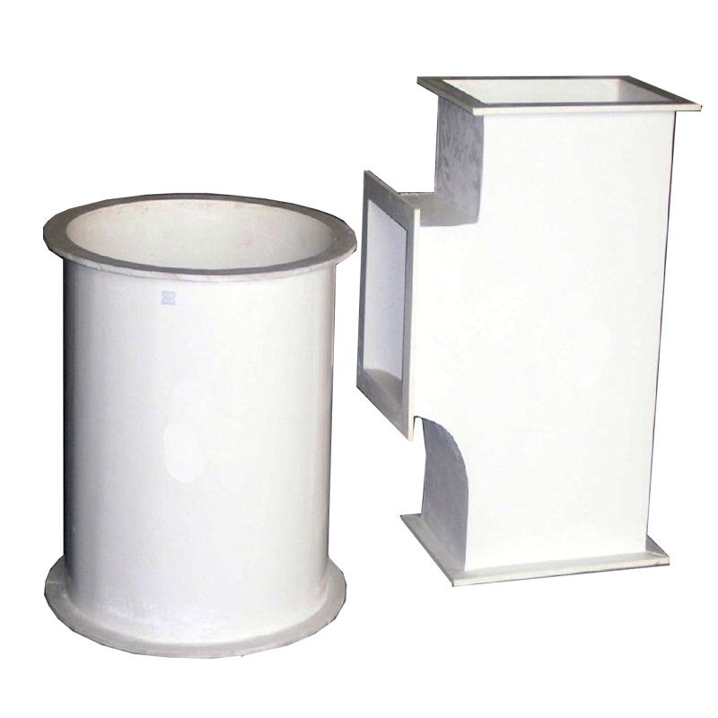 產品特點:無機玻璃鋼風管按其膠凝材料性能分為:以硫酸鹽類為膠凝材料與玻璃纖維網格布制成的水硬性無機玻璃鋼風管和以改性氯氧鎂水泥為膠凝材料與玻璃纖維網格布制成的氣硬性改性氯氧鎂水泥風管兩種類型。膠凝材料硬化體的PH值應小于8.8,并不應對玻璃纖維有堿性腐蝕。